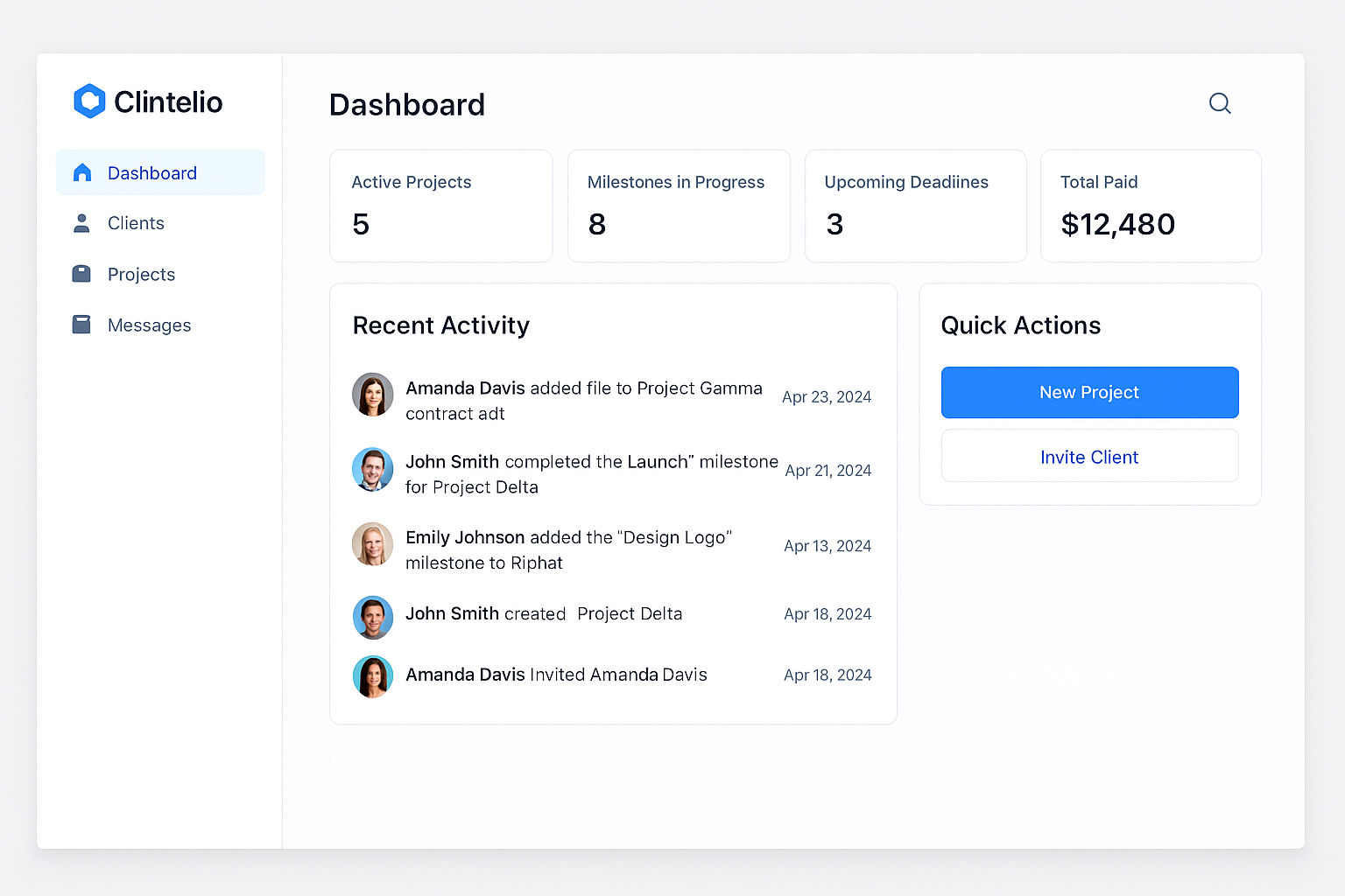 Clintelio brings all your client communication, files, milestones, and feedback into one clean workspace. Built for freelancers and small studios who want to look polished, stay organized, and get paid faster.